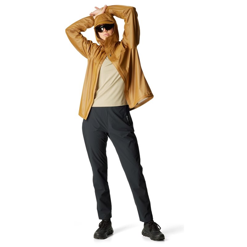 Naisten oranssi takki on suunniteltu alppilajeihin, joissa paino ja pakkautuvuus ovat ratkaisevia: juoksuun, hiihtovaellukseen, vuorikiipeilyyn tai perinteiseen kiipeilyyn. Repussa se on lähes huomaamaton, mutta huonolla säällä se varmistaa, että käyttäjä pysyy kuivana ja mukavana. Takki toimii myös superkevyenä ja mukavana sadetakkina vuoristoympäristön ulkopuolella.